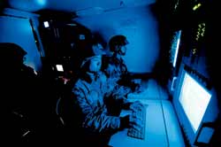在行动的各个环节,担负干扰的“蓝军”电磁分队加紧实施干扰。“蓝军”电磁分队不时释放错误诱导信息,干扰“红军”指挥通信,诱使装甲车队向错误地域开进,“红军”指挥员及时启用隐蔽指挥网接受上级命令,各级指挥员迅速采取应对措施,开通新的通信网络。随着信息对抗的展开,“蓝军”启动多种干扰方式对“红军”指挥控制通信系统进行干扰压制,红方指挥员启用反干扰预案,综合运用多种手段对抗,并设置佯动通信网,对“蓝军”实施战术欺骗,保障了指挥通信的顺畅。“蓝军”随即启用动态干扰网络,搜寻“红军”指挥通信网,采取从短波、超短波、到微波接力等多波段覆盖式干扰压制,此时的“红军”大部通信方式中断,采取有线通信、卫星通信与运动通信相结合的方式,保证了不间断的指挥。