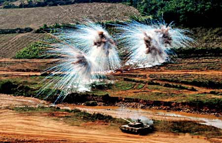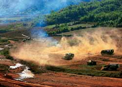 10月中下旬,代号为“前锋—2009”基本战役军团联合演习在济南军区某合同战术训练基地揭开战幕。