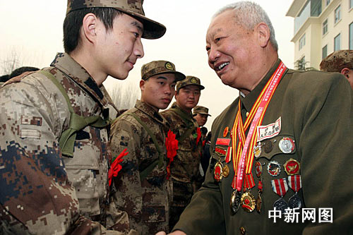 中新网郑州12月13日电(记者 赵晖 通讯员 马昕)今天下午,“中国郑州抗美援朝老战士之家”8位老功臣,在创办人张爱兰的带领下,来到河南中牟县人武部为今年入伍的新兵送行,并分别向人武部和接兵部队赠送了锦旗,为每名新战士赠送了学习笔记本,勉励他们到部队后好好锻炼,努力完善自我,做出优异成绩,用立功受奖喜报回报家乡父老。