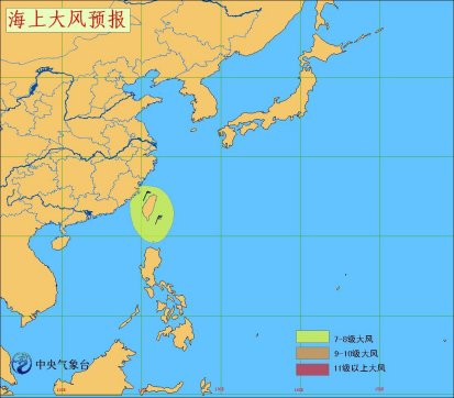 17日8时至18日8时,受冷空气影响,黄海大部海域、东海北部海域将有7-8级、阵风9级的西北风;东海南部海域、台湾海峡、台湾以东洋面和以南海域、南海东北部和中部海域将有7-8级、阵风9级的东北风;渤海将有6-7级西北风;北部湾、南海西北部海域将有6-7级东北风。其它海域天气海况条件较好。