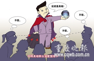 网友“华南虎” 如果浮躁曾被概括为世纪之交时的中国群体情绪征候,到了当下,估计作为时代性标签的应该是“不相信”,这种不信任感正成为新的时代群体情绪,成为思维定势。网上常见的一条跟帖是:“不明真相群众深度围观中……”
