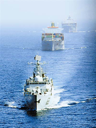 2009年,中国海军先后派遣四批护航编队赴亚丁湾、索马里海域执行护航任务,中国海军护航行动已进入有序接替、常态化运行阶段。