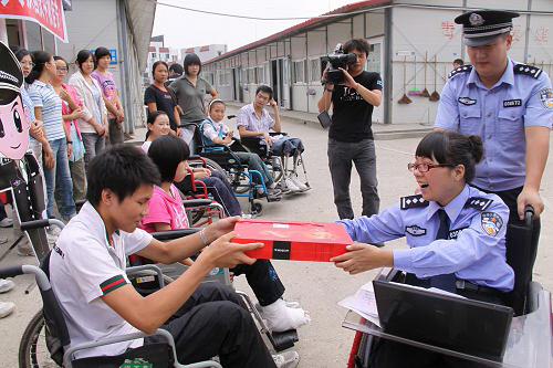 给孩子一种力量 “警界保尔”为灾区学生疗伤