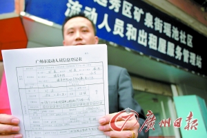 然而记者仔细看了看工作人员要求填写的登记表,却发现还是原先办暂住证时所填的《广州市流动人员信息登记表》,至于居住证的申请表是何模样,就连工作人员也称没能见上一眼。