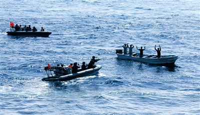 中新网1月23日电 据中央电视台报道,当地时间1月22日12时,中国海军护航编队先后接到求救信号,中国两艘商船“乐从” 轮和“鸿达”轮受到一艘快艇追击,船上人员还有枪支,中国海军护航编队立即前往救援。