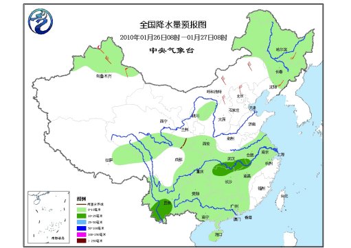 26日08时至27日08时,新疆北部、青海东部和南部、西藏中东部偏北地区、川西高原西部、西北地区东南部、陕西北部、内蒙古河套地区和东北部、东北地区中北部等地有小雪(雨夹雪)或阵雪;黄淮南部、江淮、江汉大部、西南地区大部、江南中西部和北部、华南大部等地有小到中雨或阵雨。四川盆地东南部、湖南东部、江西北部等地的部分地区有能见度小于1000米的雾,局部地区能见度不足500米。新疆北部、内蒙古大部、东北、华北北部等地有4~6级风。台湾海峡、台湾以东洋面和以南海域、南海北部海域将有6~8级的东北风。渤海、黄海大部海域将有5~7级西南风;东海大部海域将有5~6级东北转东南风;南海中部和南部海域、北部湾将有5~6级的东北风。