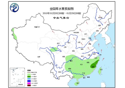 28日08时至29日08时,南疆西部山区及青海东部等地有小雪或阵雪;江南大部、华南大部、四川盆地大部、贵州等地有小到中雨或阵雨。内蒙古、东北、华北、黄淮东部等地有4~6级偏北风,新疆南疆盆地的部分地区有扬沙或浮尘天气。渤海、黄海北部有6~7级偏北风;黄淮中南部、东海有5~6级偏北风。