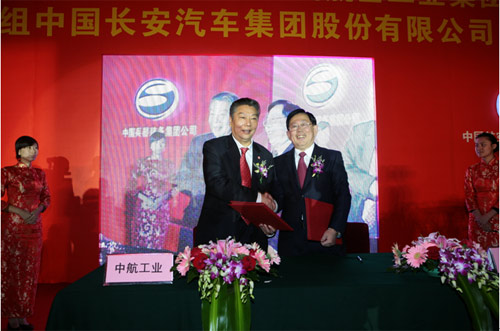 2009年11月10日,中国兵器装备集团公司、中国航空工业集团公司在人民大会堂隆重举行重组中国长安汽车股份有限公司签字仪式。这是迄今为止,中国汽车行业规模最大的重组,是军工集团间首次在主导民品领域的大规模、高层次合作。重组之后,新的中国长安汽车集团实力跃上了全新台阶。成为拥有生产基地最广、产品谱系最全、战略布局最优的中国汽车企业集团。