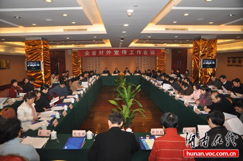 省人民政府副省长甘霖作书面讲话,省委副秘书长钟万民在会上讲话,省政府副秘书长王光明出席,省委外宣办、省政府新闻办主任孔和平作工作报告。省委对外宣传工作领导小组成员单位负责人、各市州外宣办主任、中央及香港驻湘媒体负责人参加会议。会议还表彰了2009年度全省对外宣传工作先进单位和先进个人。 (记者 杨博智)