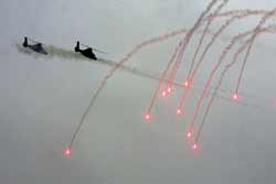 15时整,演习正式开始。记者在现场看到:山脚下,炮火集射,在空中绽起朵朵白花;荒野里,黄沙漫卷,遮天蔽日。