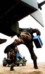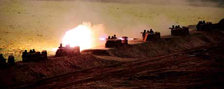 “前抗后反,迅速歼灭增援之敌!”我指挥员果断定下决心。说时迟,那时快,但见飞机过处,近千枚地雷顿时在“敌”必经之地形成一个长达几公里的雷区,空中布雷阻“敌”于战场之外;防化分队立即实施烟幕遮障,掩护各队按预定计划展开;工兵分队迅速破障,架设浮桥,开辟一条条战场通道;通信分队跟进伴随保障,实施实时可控指挥……