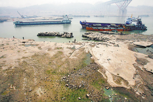 九龙坡新港码头附近的胡家滩浅滩,船舶通航形势趋于严峻,如果不及时采取措施,有可能出现断航情况。