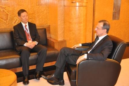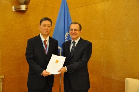 中新网3月5日电 据外交部网站消息,2010年3月3日,中国新任常驻联合国日内瓦办事处和瑞士其他国际组织代表何亚非大使向联合国递交全权证书,联合国副秘书长、日内瓦办事处总干事奥尔忠尼启则代表联合国秘书长潘基文接受了全权证书。