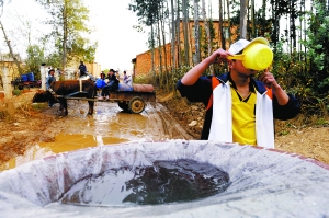 但水时断时续,因此他们得叫人看着抽水机。这个洞没水了就抽另一个。