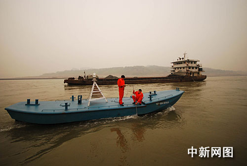 中新网武汉3月22日电 (朱治宇 王取发 徐金波)受近期中国西南地区发生的严重干旱影响,长江上游地区出现罕见枯水位,3月22日,重庆段水位退落至0.31米(航道基准数字),比去年同期低了近2米。航道部门采取疏浚、探测等措施,保证航道安全畅通。