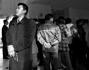 昨日上午8时许,部分记者在办理旁听证的窗口排队等候,但得到的答复是:旁听证已发完。