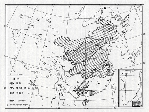 2000年春,夏,北方干旱范围广,持续时间长,旱情严重。但各地主要干旱期有所不同。华北、西北东部地区干旱主要发生在2~7月,其中内蒙古中西部、宁夏大部、甘肃西部达大旱标准;冀东北、冀中、晋西北、陕北北部及内蒙古锡盟南部和哲盟、昭盟的部分地区达特大干旱标准。