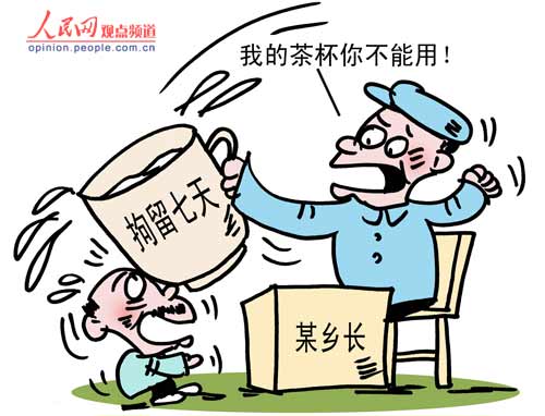 河南商丘市睢县城郊乡农民魏克兴因为土地征用问题到乡政府找乡长反映情况。结果因为老农想动用乡长的茶杯喝水,而引发纠纷,老农被当地警方予以拘留七天。该事件被媒体称为“茶杯门”予以曝光,引起各方关注。人们纷纷指责乡长“官本位思想”严重,存在滥用公权力的嫌疑。