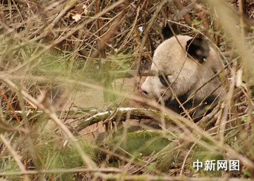 远远望去,只见一只1米左右的大熊猫背着地、面朝天、头略上扬惬意地仰躺在草丛里歇息,如熟睡的婴儿,憨态可掬。趁大熊猫在休息,大家纷纷拿出随带的摄影机、照相机、手机对着大熊猫一阵猛拍。不知是自己睡醒了,还是摄影器材轻微的快门声惊动了它,大熊猫翻身一摇一晃向密林深处慢慢走去。正当大家意犹未尽期望还能看到大熊猫的身影时,大熊猫突然又从密林中钻了出来,再次闯进大家的视线,不慌不忙让大家随意拍摄,留下它的倩影。30分钟后大熊猫一路走、一路回头,慢慢向森林走去,在人们的视线中消失。