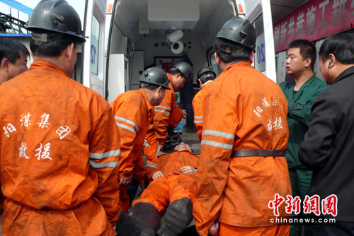 中新网山西乡宁4月7日电(记者 符永康)记者在王家岭矿透水事故救援现场看到,一位救援人员在下井前感到身体不适晕倒,被救护车接走。据了解,这名救援人员此前连续30个小时在井下参与救援。