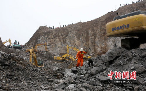 中新网峨眉乐都4月10日电(刘忠俊)10日14:55分,按照四川省公安消防总队部署,成都市消防支队政委马昆带着刚从沈阳培训结束的两只搜救犬以及训导员等赶到峨眉山市乐都镇顺江采石场山体垮滑现场增援搜救工作。经过2只搜救犬现场三次搜寻,在垮塌现场找到一台失踪汽车。