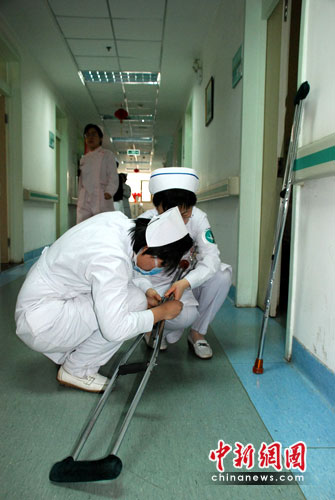 中新网4月12日电( 杨丽红)近日,在山医大一院综合科病区接受治疗的王家岭获救工友经下肢静脉B超检查以及凝血时间生化等检查后,各项指标显示无异常,可以由护士陪同,慢慢下地活动了。这是为了预防长期卧床的伤员发生下肢静脉血栓。