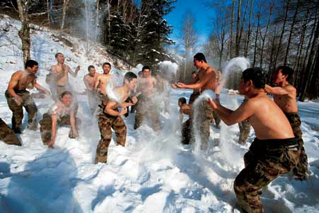 沈阳军区某集团军着眼冬季作战要求,将数万官兵拉上长白山,拉进大、小兴安岭深处的林海雪原,进行走、打、吃、住、藏训练,展开了一场向严寒要战斗力的极限生存博弈。