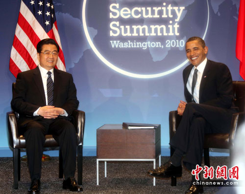 中新社华盛顿4月12日电 (记者 张朔 吴庆才)中国国家主席胡锦涛当地时间12日下午在华盛顿会见美国总统奥巴马,双方就中美关系及共同关心的重大国际和地区问题交换了意见,达成重要共识。胡锦涛就下阶段中美关系发展提出5点重要主张。