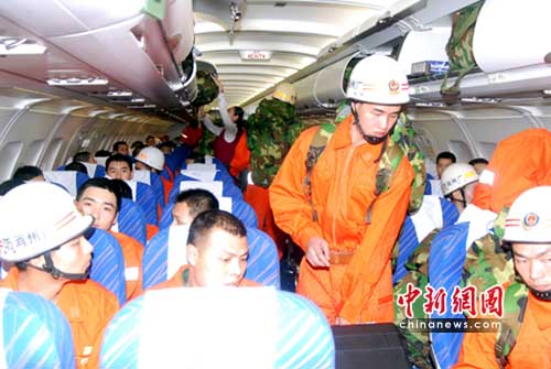 目前,南航的第一架救援包机已于16时30分满载着157名公安消防部队官兵、2.2吨生命探测仪等设备,从广州白云机场起飞,飞赴青海西宁机场。据执行此次航班的南航广州飞行部A320机队副经理朱文学、副驾驶张漫绿机组介绍,目前除广州地区有雷雨天气外,航路天气情况良好,如果正常飞行,飞机将在三个小时内抵达灾区机场。