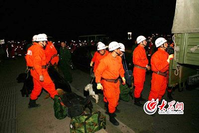 4月14日22时30分,山东消防总队接到公安部消防局赶赴青海玉树开展地震救援的命令后,已经集结待命的我省第一批地震救援消防官兵立即赶赴机场,于15日凌晨0时40分乘坐山东航空公司SC901次航班从济南遥墙机场起飞,在3时15分到达青海西宁机场。