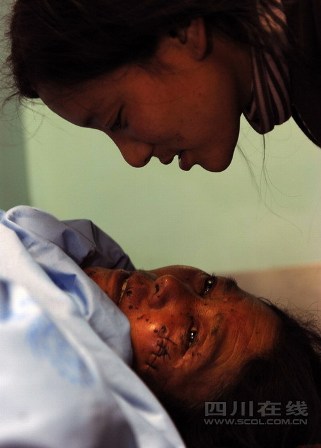 当满载伤员的急救车队飞驰在机场高速时,潘莲英打开了手机,女儿牟元霞打来电话,“爸爸还好嘛?”“好!我们马上就到医院了。”躺在担架上的牟炳学听到女儿的问候,再也控制不住自己的情绪,眼泪顺着布满血痂的眼角不停流淌。