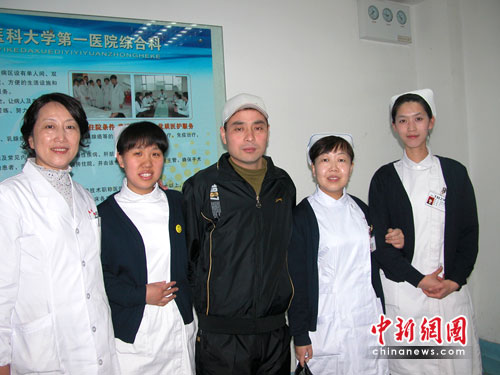 中新网太原4月16日电(聂晶梅)16日上午,53名山西王家岭煤矿获救工友出院。