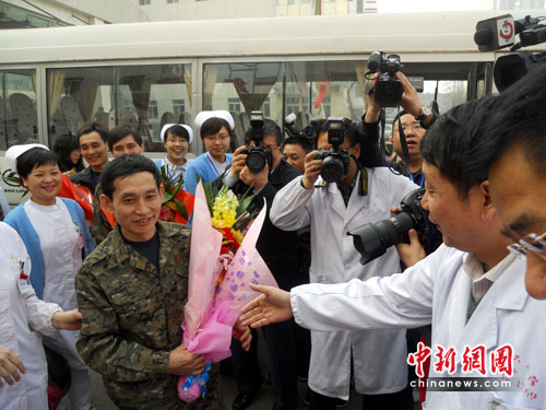 中新社太原4月16日电 题: 53名王家岭获救矿工出院 与山西医护人员惜别