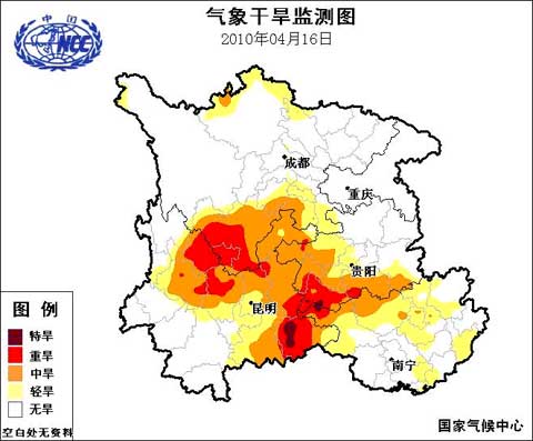 中新网4月16日电 中央气象台16日18时继续发布干旱黄色预警:据监测,云南中北部和东部、贵州西部和南部、广西西北部、四川南部仍存在中度以上气象干旱。未来三天,贵州西南部、广西西北部、云南东部、四川南部有一般不足5毫米的降雨,广西东部的局部地区有中到大雨。西南主要旱区大部地区气象干旱仍将持续。