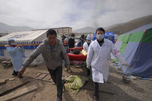 第一次遇到,在一个医疗帐篷前,他正和来自什邡的医生一起抬着担架向前飞奔,把重伤员转移到救护车上;第二次遇到,在玉树团州委设立的志愿者报名处的小桌子前,他正用沙哑的嗓音呼喊着几名志愿者去山区抬伤员。