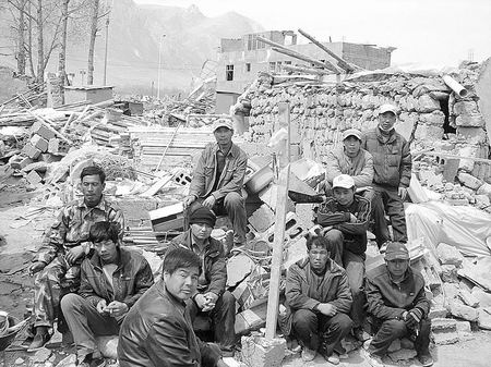刚挖出16个人,不远处又传来呼救声,他们立刻跑了过去。等他们将被埋废墟中的6人救出后,其中的两人已经停止了呼吸。“他们光顾着去救人,把我都忘了!”说话人郭楠是王喜民的工友,当时被埋在房屋下,而工友们起初并没有注意,只顾跑去救人。等想起他,返身回来把他救出来时,郭楠已被埋了半个小时。