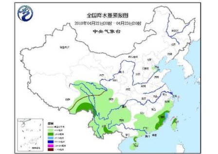 据中央气象台实况监测显示,4月20日08时至22日14时,中国中东部地区出现了大范围的较强降雨,陕西南部局部地区、河南大部、湖北部分地区、江西部分地区、浙江南部、湖南北部、广西中东部、广东中西部累计降雨量有50~90毫米,江西和广东局部地区出现100~150毫米强降雨,其中,22日08时至14时,广东河源、龙门6小时降水量分别达到了148毫米、113毫米。