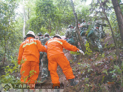 在现场,救援官兵分成3个救援小组,将搜索范围扩大到30米,以免漏掉伤员。他们同时采用切割机、救援绳索、破拆工具、救援担架等特种消防器材展开救援,与当地村民一起将伤员抬上路面。