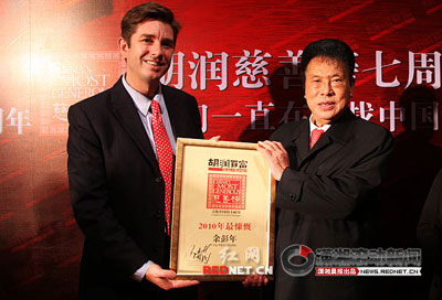 “这是我最后一次捐赠,所有财产全部委托香港汇丰银行托管、监管,不继承、不变卖、不投资,全部用于慈善事业。”操着浓厚湖南口音的余彭年22日在胡润研究院第七次发布的《2010胡润慈善榜》现场表示。