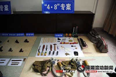 专案组重点围绕王博抢劫作案时使用的“仿六四”式手枪展开了深入侦查。通过艰苦细致的调查,4月14日晚,专案民警将绰号“土匪”的韩志炎(男,29岁,湖南省双牌县人)、余亮(男,26岁,湖南省沅江市人)、赵晶(男,22岁,湖南省道县人)抓获。3名犯罪嫌疑人交待了帮助王博购买“仿六四”式手枪的犯罪事实。