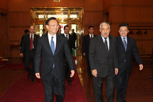 中新网4月28日电 据外交部网站消息,中国外交部长杨洁篪28日在钓鱼台国宾馆同来华访问的第64届联合国大会主席阿里·阿卜杜萨拉姆·图莱基举行会谈。双方就联合国事务及其他共同关心的问题交换了看法。
