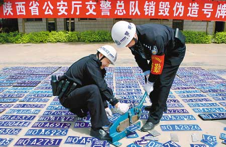 交警总队昨集中销毁123副“陕O”假牌照,同时作出新规——