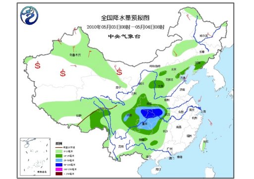 3日08时至4日08时,青海南部、西藏南部和东部有小到中雪(雨)或雨夹雪;新疆北部、甘肃西部、西北地区东部、华北大部、内蒙古东部、黑龙江北部、吉林东南部、辽宁大部、黄淮西部、四川大部、重庆、云南西北部和南部、贵州、广西大部等地有小到中雨或阵雨,其中,陕西南部、四川东北部、重庆、湖北西部、贵州北部等地的部分地区有大到暴雨,并可能伴有短时雷雨大风等强对流天气。新疆大部、甘肃西部、内蒙古大部、东北、华北北部、黄淮东部等地有4~6级风,山口地区风力可达8级;南疆盆地、青海西北部、甘肃西北部、内蒙古西部和东南部等地的部分地区有扬沙或浮尘天气,南疆盆地局部有沙尘暴。渤海、黄海北部有4~6级偏东转东南风;黄海中南部、东海北部有偏南风5~6级、阵风7级增加到6~7级、阵风8级;东海南部、台湾以东洋面、南海大部有4~6级偏东或东南风。