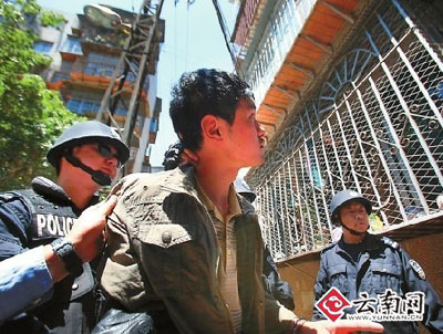 昨天中午,杜志国被押解回昆后,指认了丰宁小区作案现场。尽管所到之处尽是谴责之声,但他神情平静,甚至在面对镜头时竟不时露出笑容。