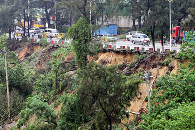 塌方的路基长200多米,从30多米高的路基上塌方滑落下去,形成的泥石流将该路段下方约2000平方米临时建筑冲垮,其中一间收垃圾的简易平房被泥石流埋住。有居民反映,道路的排水管道常有人随便倒淤泥,导致排水不畅,而暴雨则渗入路基泥土中,可能加剧导致了塌方并形成泥石流。(记者姚颢、实习生杨胜利)