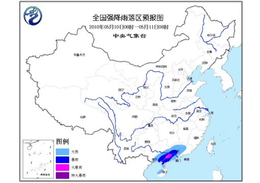 中新网5月10日电 中央气象台5月10日06时继续发布暴雨黄色预警:预计,10日08时到11日08时,广西南部、广东大部、海南西北部等地的部分地区有大雨,广西东南部、广东西南部的部分地区有暴雨,局地有大暴雨。上述局部地区并伴有短时雷雨大风或冰雹等强对流天气。