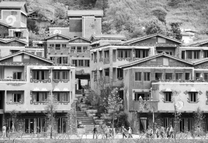 水磨镇新建的居民安置小区“水磨羌城”,也是富有羌族风格的建筑,170栋单体建筑,具备了羌寨建筑“石结构、泥结构、石木结构、木结构”等综合建筑特点,在传承并发扬了羌寨建筑文化的基础上,又有创新。