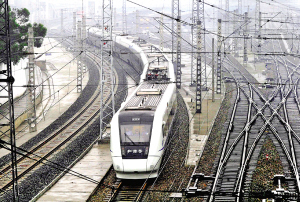 成灌快客 成都至都江堰(都江堰原名灌县),运营里程72公里,设计时速200公里,车站15座,起点成都站,终点青城山站。每天6时40分发头班车,共开行15对。高峰时段始发站发车最短间隔25分钟,从成都到都江堰只需27分钟,到青城山也只要30分钟。列车采用动车8辆编组,可载客661人。(江跃中)