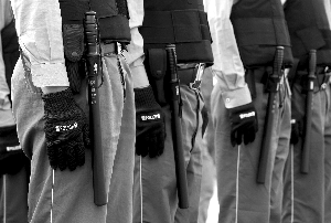 保安站岗 腰别警棍喷雾剂