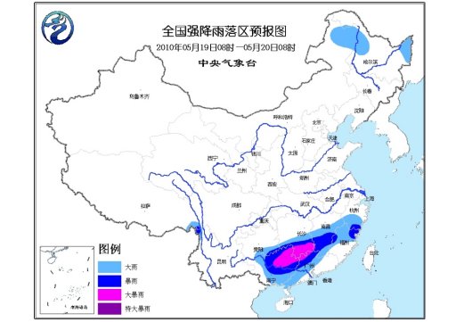 中新网5月19日电 中央气象台5月19日06时继续发布暴雨蓝色预警:预计,19日08时到20日08时,贵州东南部、湖南南部、江西中南部、浙江南部、福建中北部、广西中东部、广东北部和西部以及西藏东南部、云南西北部等地有大雨或暴雨。其中,广西东北部、湖南南部、广东西北部等地局部有大暴雨;内蒙古东北部、黑龙江东北部和西部的部分地区有大雨。
